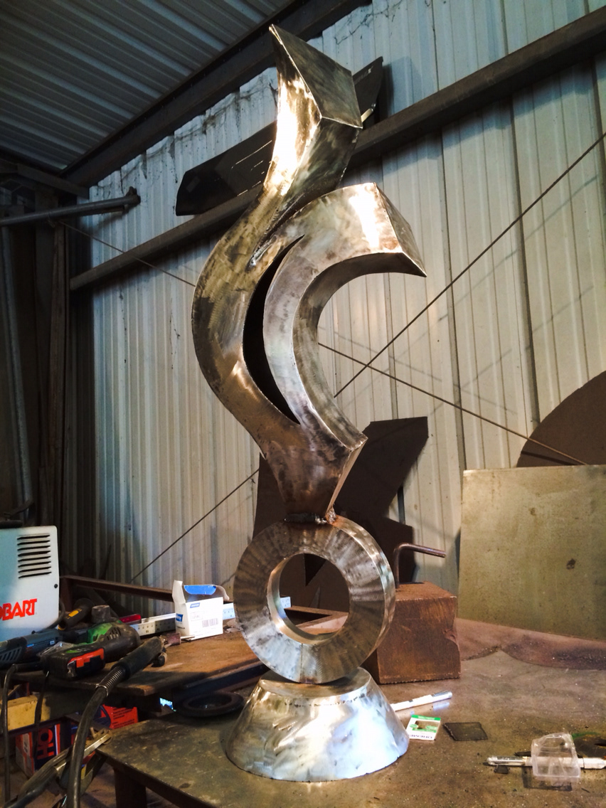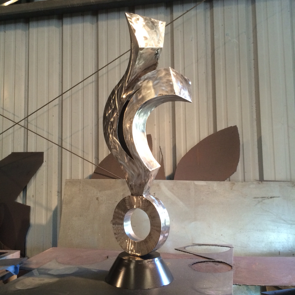 Stainless Steel Sculpture of abstract flame designed and fabricated by Hunter Brown.